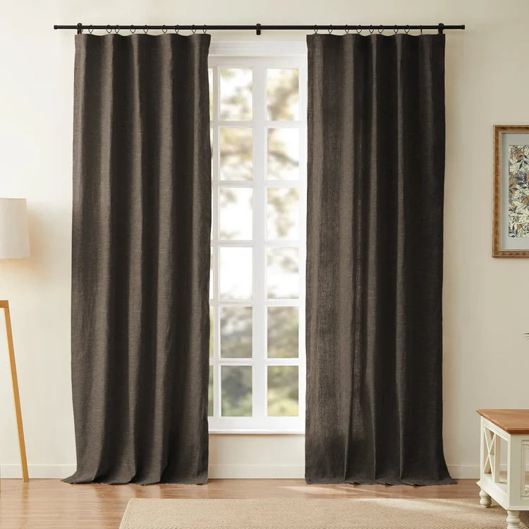 Nordic Shadow mørklægningsgardin i mørkebrun giver dig effektiv lyskontrol med 70-90% mørklægning. Perfekt balance mellem privatliv og naturligt lys - ideel til stuer, spisestuer og rum hvor du ønsker dæmpet lys uden total mørklægning.